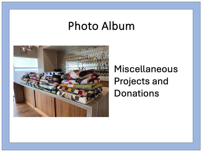 RCQG, and our members, contribute quilts to local, not-for-profits organizations and other projects our members wish to support.